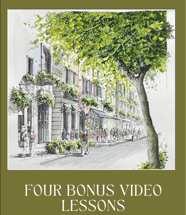 Purchasing these 2 courses separately would cost you $597. But, with your special discount - as you registered for my free class, you save $350! giving you an incredible deal! which will guide you from your first steps in learning Urban sketching!